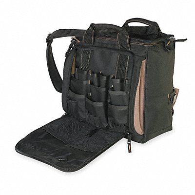 Tool Bag Bag Style Wide-Mouth Tool Bag Material Polyester Closure Type Zipper Number of Bags 1 Overall Height 13 in Overall Depth 13 in Overall Width 7 in Color Black Shape Square Features Padded Reinforced Web Carrying Handles and Adjustable Shoulder Strap Interior Dimensions 13 in L x 7 in W x 13 in H Number of Handles 3 Number of Inside Pockets 20 Number of Outside Pockets 10 Number of Pockets 30 Number of Shoulder Straps 1 Primary Application General Purpose Web Strap Yes