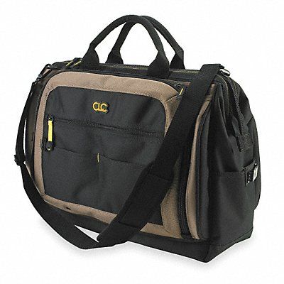 Tool Bag Bag Style Wide-Mouth Tool Bag Material Polyester Closure Type Zipper Number of Bags 1 Overall Height 14 in Overall Depth 7 in Overall Width 18 in Color Black Shape Rectangle Features Vertical Pockets Keep Tools in Sight for Quick Access Zippered Side Panels Prevent Spillage of Tools When Carrying or Storing Carrier Includes Caribiner Number of Handles 3 Number of Inside Pockets 43 Number of Outside Pockets 7 Number of Pockets 50 Number of Shoulder Straps 1