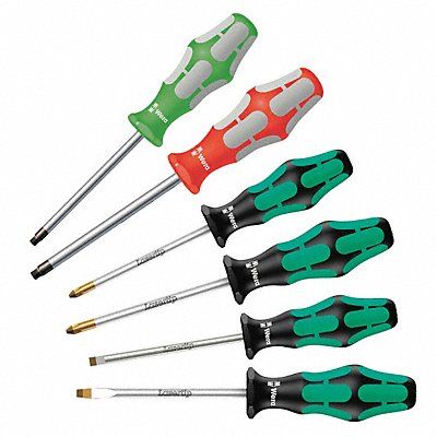 Screwdriver Set Slotted 0.8x4.0 1.2x6.5 Phillips #1 #2 Square #1 #2 Assorted Number of Pieces 6 Includes Keystone Slotted 5/64 in x 6 in 1/32 in x 4 in Phillips #1 x 3 in #2 x 4 in Square #1 x 3 in #2 x 4 in