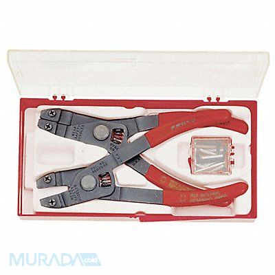 Retaining Ring Plier Set For Ring Type External Internal Plier Types Retaining Ring Pliers Non-Sparking No Grip Style Standard Cushion Overall Length 6 1/4 in For Minimum Bore Diameter 3/8 in For Maximum Bore Diameter 2 in For Minimum Shaft Diameter 1/4 in For Maximum Shaft Diameter 2 in Tip Diameter 0.038 in 0.047 in 0.07 in Tip Angle 0 Degrees Jaw Opening Type Manual Number of Pliers 18 Container Type Case For Bore Diameter 3/8 in to 2 in For Shaft Diameter 1/4 in to 2 in