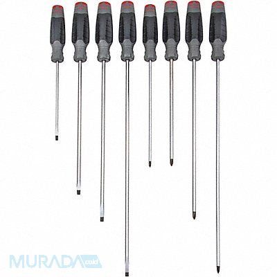 Screwdriver Sets Tip Finish Black Oxide #1 #2 1/4 in 3/16 in Cabinet Keystone Phillips Cushion Number of Pieces 8 No ESD Safe No Non-Sparking No Measurement Type Metric SAE Includes #2 x 12 in #2 x 16 in #2 x 8 in 1/4 in x 10 in 1/4 in x 12 in 1/4 in x 16 in Phillips #1 x 8 in Slotted 3/16 in x 6 in Corrosion Resistant Yes ASME B107.600 ISO 2380 Tether Ready No Range of Shank Lengths 6 in to 16 in