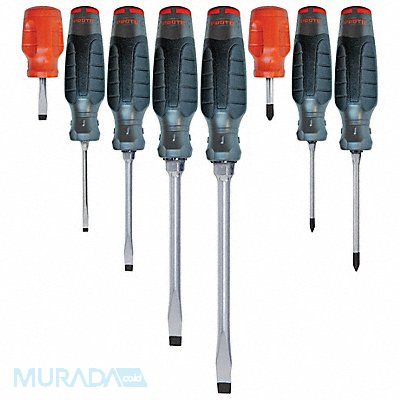 Screwdriver Sets Tip Finish Black Oxide #1 #2 1/4 in 3/16 in 3/8 5/16 in Cabinet Keystone Phillips Cushion Number of Pieces 8 No ESD Safe No Non-Sparking No Measurement Type Metric SAE Includes #2 x 1 1/2 in #2 x 4 in 1/4 in x 1 1/2 in 1/4 in x 4 5/16 in x 6 in Phillips #1 x 3 in Slotted 3/16 in x 3 in Corrosion Resistant Yes ASME B107.600 ISO 2380 Tether Ready No Range of Shank Lengths 1 1/2 in to 6 in