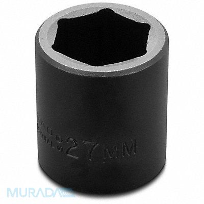 Impact Socket Socket Size 27 mm Socket Shape 6-Point Drive Type Impact Drive Size 1/2 in Compatible Fastener Type Bolts Screws Studs No Alloy Steel Black Oxide Impact Rated Yes Socket Depth Standard Socket Length 2 in