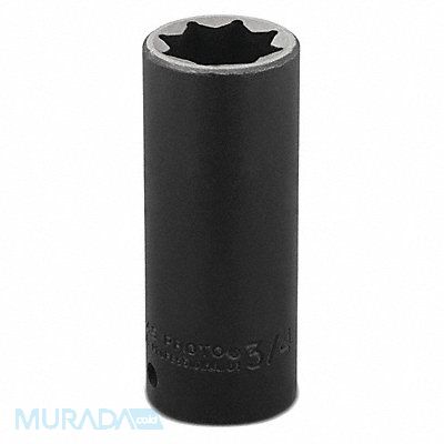 Impact Socket Socket Size 3/4 in Socket Shape 8-Point Drive Type Impact Drive Size 1/2 in Compatible Fastener Type Bolts Screws Studs No Alloy Steel Black Oxide Impact Rated Yes Socket Depth Deep Socket Length 3 1/4 in