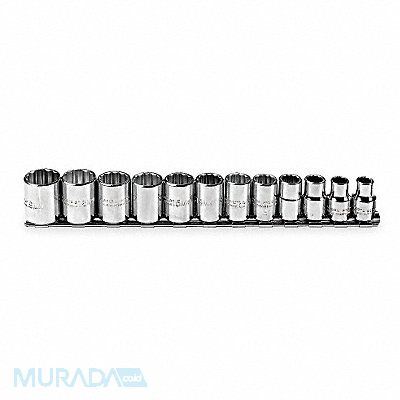 Socket Set Standard Socket Count/Style (12) 12-Point Standard Socket Style/Size Standard 12-Point 8 mm 9 mm 10 mm 11 mm 12 mm 13 mm 14 mm 15 mm 16 mm 17 mm 18 mm 19 mm Deep Socket Count/Style None Flex Socket Count/Style None Hand Drive Size 3/8 in Metric 12-Point Chrome