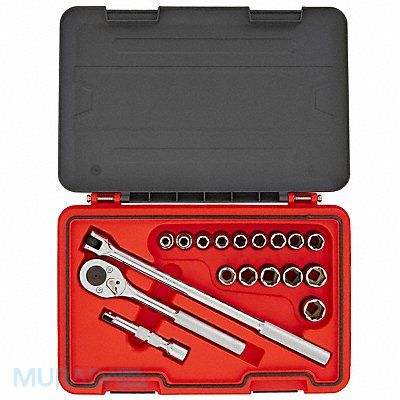 Socket Set Standard Socket Count/Style (15) 6-Point Deep Socket Count/Style 0 Flex Socket Count/Style 0 Hand Drive Size 1/2 in Metric Chrome