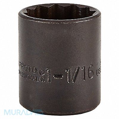 Socket Socket Size 1 1/16 in 12-Point Alloy Steel Black Oxide Standard Hand Drive Size 1/2 in SAE Impact Rated No Standards ASME B107.110-2012 SAE AS4984A