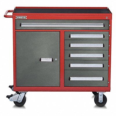 Rolling Tool Cabinet 560 Series Width 45 in Depth 21 3/8 in Height 42 1/2 in Number of Drawers 6 Black Drawer Color Black Drawer Capacity 400 lb Ball Bearing Full Extension Drawer Slides Gloss/DuraCoat(R) Finish Storage Capacity 24 498 cu in Load Rating 3200 lb Caster Size 6 in x 2 in Number of Shelves 1 Steel Bottom 14 Side 16 Drawers 18 Gauge Work Surface Material Steel Wood Caster Wheel Material Nylon Caster Type (2) Fixed (2) Swivel Keyed
