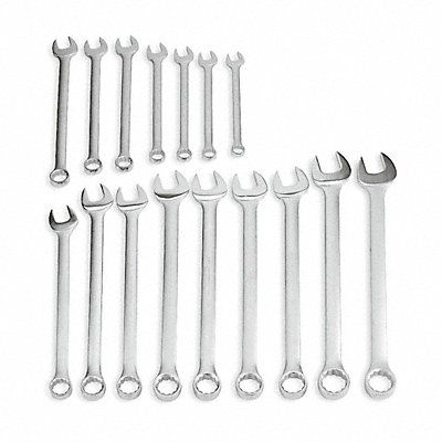 Combination Wrench Set Alloy Steel Satin Number of Tools 16 Range of Head Sizes 1 5/16 in to 2 1/2 in Head Offset Angle 15 Degrees Offset SAE 1 5/16 in 1 3/8 in 1 7/16 in 1 1/2 in 1 5/8 in 1 11/16 in 1 3/4 in 1 13/16 in 1 7/8 in 2 in 2 1/16 in 2 1/8 in 2 3/16 in 2 1/4 in 2 3/8 in 2 1/2 in Rounded Opening Angle (Deg.) 15 Degrees