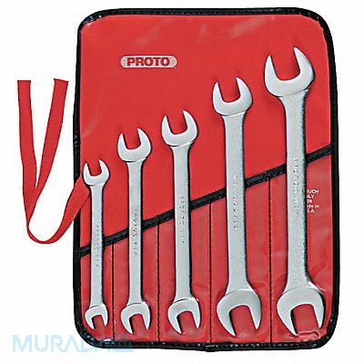 Open End Wrench Set Alloy Steel Satin Number of Tools 5 Range of Head Sizes 3/8 in to 7/8 in 15 Degrees Insulated Yes Vinyl Pouch SAE Double End Rounded One Piece 5 3/4 in to 10 1/8 in