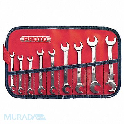 Open End Wrench Set Alloy Steel Satin Number of Tools 9 Range of Head Sizes 7/32 in to 1/2 in 15 Degrees 75 Degrees Insulated Yes Vinyl Pouch SAE Double End Rounded One Piece 3 in to 4 7/16 in