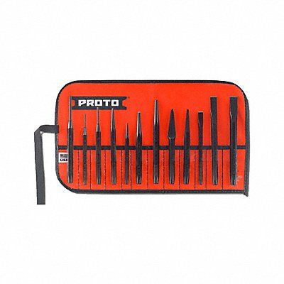Punch and Chisel Set Set Type Punch and Chisel Set Types Included Cape Chisel Center Punch Cold Chisel Diamond Point Chisel Pin Punch Starting Punch Number of Pieces 12 Blade Tip Shape Diamond Blade Width 3/16 in 5/16 in 7/16 in 1/2 in Includes Handle No Chisel Type Cape Chisel Cold Chisel Diamond Point Chisel Overall Length 4 1/4 in 4 3/4 in 5 in 5 1/4 in 5 1/2 in 5 3/4 in 6 in