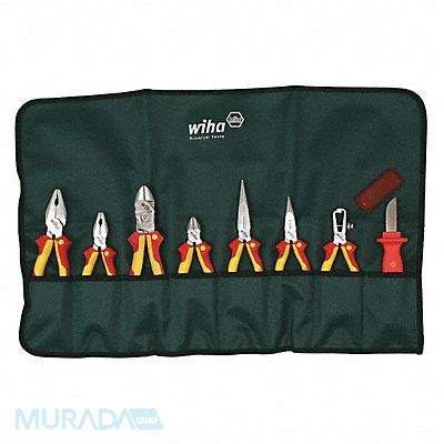 Plier Set ESD-Safe No Insulated Yes Number of Pliers 8 Plier Types Long Nose Pliers Included 6.3 in and 8 in Long Nose 6.3 in Combination Pliers 6.3 in Diagonal Cutter 6.3 in Wire Stripping Pliers 8 in BiCut SuperCut 9 in High Leverage Combination Pliers Electrician s Knife Jaw Opening Type Manual Voltage Rating 1 000 V Grip Style Deluxe Cushion Additional Tool Functions Cable Cutter Conduit Gripper Wire Stripper Additional Tools Included Electrician s Knife