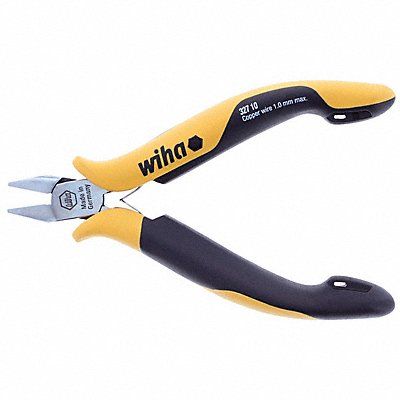 Precision Diagonal Cutting Plier Plier Type Precision Diagonal Cutting Pliers Cut Profile Flush Cutter Type Precision Diagonal Cutting Pliers ESD-Safe Yes Insulated No Non-Sparking No Head Offset Angle 0 Degrees Nose Shape Pointed Overall Length 4 1/2 in Maximum Jaw Opening 7/8 in Jaw Length 1/2 in Jaw Width 1/2 in Jaw Opening Type Spring Return Grip Style Standard Cushion Maximum Wire Cutting Diameter 0.875 in Maximum Wire Cutting Gauge 16 AWG Voltage Rating Not Rated