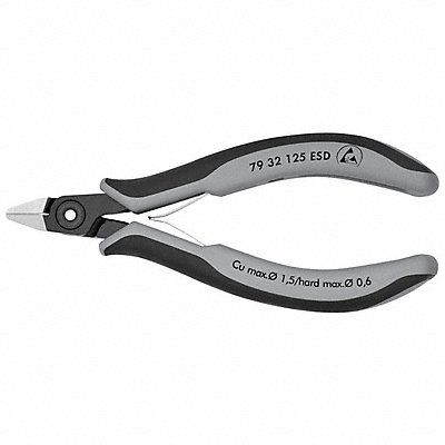 Precision Diagonal Cutting Plier Plier Type Precision Diagonal Cutting Pliers Cut Profile Standard Cutter Type Precision Diagonal Cutting Pliers ESD-Safe Yes Insulated No Non-Sparking No Head Offset Angle 0 Degrees Nose Shape Pointed Overall Length 5 in Maximum Jaw Opening 0 in For Maximum Diameter Hard Steel 1/64 in Jaw Length 1/2 in Jaw Width 1/2 in Jaw Opening Type Spring Return Grip Style Deluxe Cushion Maximum Wire Cutting Diameter 0.016 in Voltage Rating Not Rated