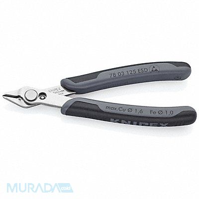 Diagonal Cutting Plier Plier Type Precision Diagonal Cutting Pliers Cut Profile Flush Cutter Type Diagonal Cutting Pliers ESD-Safe Yes Insulated No Non-Sparking No Head Offset Angle 0 Degrees Nose Shape Pointed Overall Length 5 in Maximum Jaw Opening 0 in Jaw Length 3/8 in Jaw Width 1/2 in Jaw Opening Type Spring Return Grip Style Deluxe Cushion Maximum Wire Cutting Diameter 0.469 in Tether Ready No Additional Tool Functions Wire Cutter Blade Material Stainless Steel