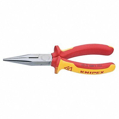 Needle Nose Plier Plier Type Needle Nose Pliers Nose Shape Chain Jaw Bend 0 Degrees ESD-Safe No Overall Length 6 1/4 in Maximum Jaw Opening 1 1/4 in Jaw Length 2 in Tip Width 3/32 in Additional Tool Functions Cutter Insulated Yes Non-Sparking No Precision No Voltage Rating 1 000 V Application Cutting Fine Gripping Cutting Capacities 1/16 in (Hard Wire) 7/64 in (Medium-Hard Wire) Features Half-Round Jaws Pointed For Wire/Cable Type Hard Wire Medium-Hard Wire