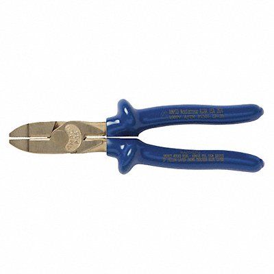 Linemans Plier Insulated Yes Includes Voltage Detection Module No Tether Ready No Plier Type Lineman s Pliers Overall Length 8 3/4 in Jaw Shape Combination Flat Curved Jaw Length 1 5/8 in Jaw Width 1 1/8 in Jaw Thickness 3/8 in Handle Style Ergonomic Non-Sparking Yes ESD-Safe No Voltage Rating 1 000 V High Leverage No Features Corrosion Resistant Ergonomic Handle Handle Color Blue Jaw Opening Type Manual