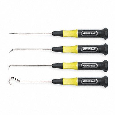 Probe Set 4 Pc Point Type 180 Degrees Hook 35 Degrees Bend 90 Degrees Bend Straight Replaceable Tip No Threaded Points No Magnet End No Tip Material Hardened Steel Blade Fixed In Handle Handle Material ABS Plastic Chrome Plated Finish