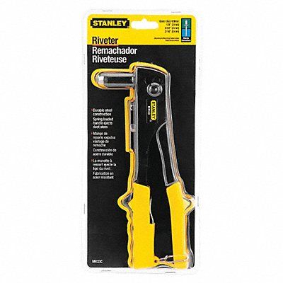Rivet Tool For Rivet Diameter 1/8 in 5/32 in 3/16 in For Rivet Material Aluminum Steel For Rivet Type Blind Head Type Angled Rivet Tool Type Rivet Tool Includes Nosepiece Yes Nosepieces Included 3/32 in 1/8 in 5/32 in 3/16 in Overall Length 10 in Body Material Spring Loaded Handle Steel Body Features Long Handle Slim-Nose Design Spring-Loaded Handle Ejects Rivet Stem Automatically Grip Material Plastic Head Offset Angle 90 Degrees