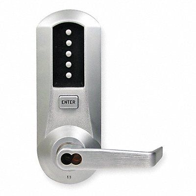 Mechanical Push Button Lockset Handle Type Winston Lever Function Entry with Key Override Key Override Options Best and Equivalents (6 or 7 Pin) Hand Factory Left Field Reversible Finish Satin Brass Door Thickness 1-3/8 in to 2-1/4 in Keypad 5 Button Vandal Resistant Backset 2-3/4 in Grade 1 ADA Compliant Yes 3 hr Fire Rated Case Material Solid Cast Zinc Series 5000 Latch Length 1/2 in Max User Codes 1 Standards ANSI/BHMA A156.2 Weather Resistant Yes