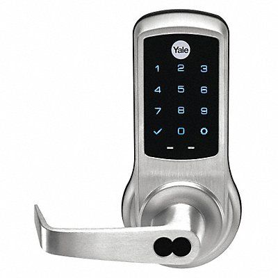 Electronic Keyless Lock Function Entry with Key Override Access Method Touch Screen Keypad Mounting Style Cylindrical Lock Material Metal Finish Satin Chrome Series NTB600 Handle Type Lever Door Thickness 1-3/4 in Key Override Options Sargent Interchangeable Cylinders Hand Nonhanded Network Interface None Outside Height 8 1/8 in Outside Width 3 3/4 in Outside Depth 3 5/16 in Keypad Material Hardened Plastic Power Source (4) AA Batteries Battery Life 20 000 Cycles