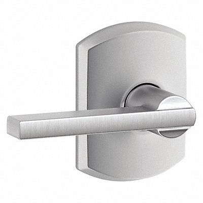 Mechanical Lever Cylindrical Lockset Function Passage Lockset Grade 2 Style Latitude/Greenwich Lockset Finish Satin Chrome Keyway Type None Key Type Not Keyed Standards ANSI/BHMA A156.2-2011 ADA Compliant No Lockset Fire Rating Not Rated Backset 2-3/8 in or 2-3/4 in Ligature Resistant No Features Left Hand For Use With Residential/Light Commercial Applications Handle Material Brass Includes Hardware Item Door Lever Lockset Key Material Keys Not Included (Lock Is Keyless)