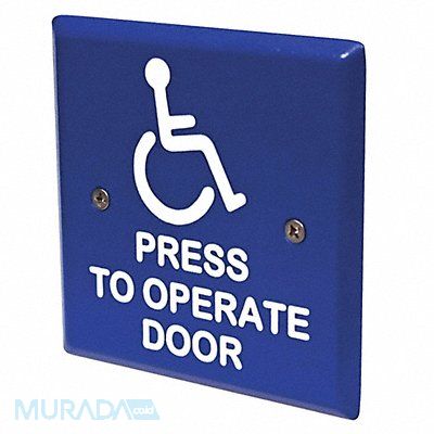 Switch Plate Cover Type Square Switch Action Push Button Material Stainless Steel Finish Powder Coated Depth 1-3/8 in Height 4-1/2 in Width 4-1/2 in Button Color Blue Color Blue Input Voltage 12 to 24VAC/DC Amps AC 15A @ 125VAC Event Audit Trail No Keypad No Cylinder No Standards UL For Use With Wireless Activation Doors Includes Rubber Bellows