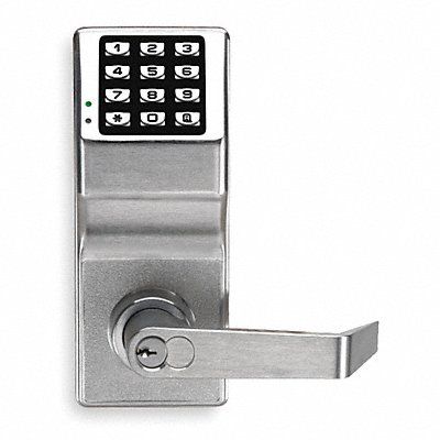 Electronic Keyless Lock Function Entry and Egress with Key Override Access Method Keypad Mounting Style Cylindrical Lock Material Zinc Alloy Finish Satin Chrome Series DL5200 Handle Type Lever Door Thickness 1-3/4 in Key Override Options Small Format Interchangeable Core Hand Nonhanded Outside Height 8 in Outside Width 3 1/4 in Outside Depth 3 1/2 in Power Source (5) AA Batteries Battery Life 100 000 Cycles Operating Temp Range -31 Degrees to 151 Degrees F Max User Codes 100