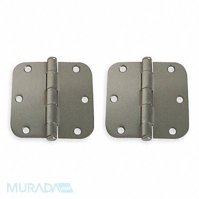 Butt Hinge Steel Satin Nickel Finish With Holes 3 Holes per Leaf No Ligature Resistant 180 Degrees Range of Motion Orientation Non Handed 3 1/2 in Door Leaf Height 3 1/2 in Frame Leaf Height 3 1/2 in Door Leaf Width 3 1/2 in Frame Leaf Width 0.087 in Door Leaf Thickness 0.087 in Frame Leaf Thickness Plain Bearing Type Rounded Corners Included Hardware Package Quantity 2