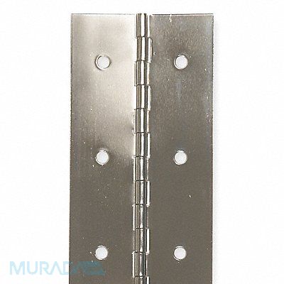 Continuous Hinge Ligature Resistant No Stainless Steel Material 180 Degrees Range of Motion Stainless Steel Finish With Holes Non Handed Orientation 1/2 in Overall Knuckle Height 72 in Door Leaf Height 72 in Frame Leaf Height 3/4 in Door Leaf Width 3/4 in Frame Leaf Width 0.06 in Door Leaf Thickness 0.06 in Frame Leaf Thickness Length 6 ft Not Included Hardware 3 in Hole Spacing 24 Holes per Leaf Full Surface Mounting 1/8 in Pin Dia Steel Pin Material Nonremovable Pin Type