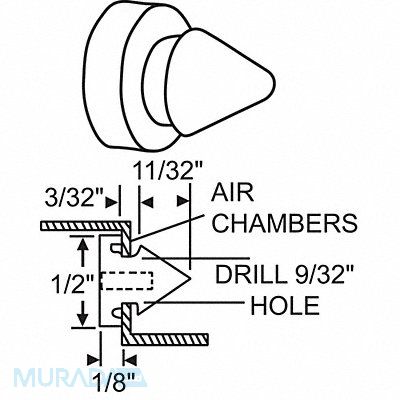 Bumper Mounting Type Door Mount Finish Unfinished Color Silver Base Dia 1/2 in Projection 33/64 in Length 1/2 in Height 33/64 in Width 1/2 in Door Opening Adjustment 110 Degrees Mounting Style Screw-In Material Aluminum Tip Material Rubber Hardware Not Included Features Metal Door Rubber Bumper