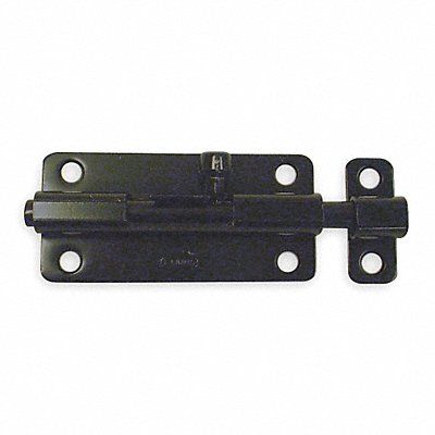 Barrel Slide Bolt Operation Type Nonlocking-Surface Strike Only Black Finish Material Steel Length 4 in Width 1 1/2 in Height 1/2 in Bolt Length 4 in Bolt Head Dia 3/8 in Throw Size 1/2 in Holes per Leaf 6 Hardware Included