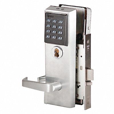 Electromagnetic Lock Mortise Opening Action Electromagnetic Brass Bronze Steel Input Voltage 1.5V DC Features Latch with Key Lever Handle Right Handed Lock Body Length (In.) 10 1/2 in Lock Body Width (In.) 7 1/4 in Lock Body Depth (In.) 6 3/4 in Mfr Series 45HZ Instantaneous Release Delay Satin Chrome Finish Standards ADA ANSI ASTM BHMA UL For Use With Various Door Types Includes Mounting Hardware
