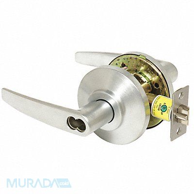 Mechanical Lever Cylindrical Lockset Function Storeroom Lockset Grade 2 Style 7KC Curved No Return Lever Lockset Finish Satin Chrome Keyway Type None Key Type Not Keyed Standards ANSI UL Listed ADA Compliant Yes Lockset Fire Rating 3 hr Backset 2 3/4 in Ligature Resistant No Cylinder Core Type SFIC Not Included Features Corrosion Treated Internal Steel Mechanisms Cylindrical D-Rose For Use With Hollow Metal and Wood Doors Handle Material Plated Zinc