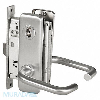 Mechanical Lever Mortise Lockset Function Dormitory Lockset Grade 1 Style 40 H Escutcheon Lockset Finish Satin Chrome Keyway Type None Key Type Not Keyed Standards ANSI A156.13 ADA Compliant Yes Lockset Fire Rating 3 hr Ligature Resistant No Cylinder Core Type SFIC Features Right Hand Solid Tube/Return For Use With Various Door Types Handle Material Stainless Steel Includes Hardware Latch Item Door Lever Lockset Key Material Keys Not Included (Lock Is Keyless)