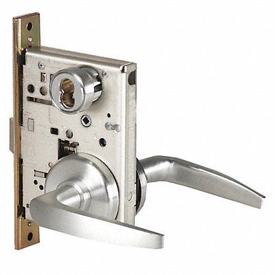 Mechanical Lever Mortise Lockset Function Storeroom Lockset Grade 1 Style 40H Rose Lockset Finish Satin Chrome Keyway Type None Key Type Not Keyed Standards ANSI A156.13 ADA Compliant Yes Lockset Fire Rating 3 hr Backset 2 3/4 in Ligature Resistant No Cylinder Core Type SFIC Features Curved/No Return Left Hand For Use With Various Door Types Handle Material Stainless Steel Includes Hardware Latch Item Door Lever Lockset Key Material Keys Not Included (Lock Is Keyless)