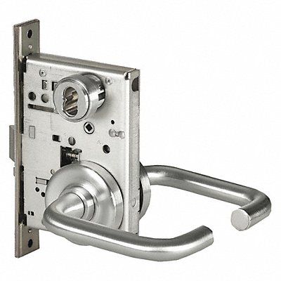 Mechanical Lever Mortise Lockset Function Classroom Lockset Grade 1 Style 40H Rose Lockset Finish Satin Chrome Keyway Type None Key Type Not Keyed Standards ANSI A156.13 ADA Compliant Yes Lockset Fire Rating 3 hr Backset 2 3/4 in Ligature Resistant No Cylinder Core Type SFIC Features Right Hand Reverse Bevel Solid Tube/Return For Use With Various Door Types Handle Material Stainless Steel Includes Hardware Latch Item Door Lever Lockset