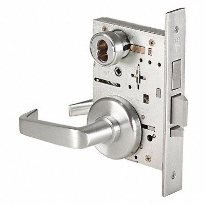 Mechanical Lever Mortise Lockset Grade 1 Style 45H Escutcheon Lockset Finish Satin Chrome Key Type Different Standards ANSI ADA Compliant Yes Lockset Fire Rating 3 hr Backset 2 3/4 in Ligature Resistant No Features Contour Angle Return Lever Style Right Handed Includes Lever Trim and Component Kit Item Mortise Lockset Key Material Nickel Silver Location Type Commercial Institutional Residential Number of Keys 2 Required Door Thickness 1-3/4 in Series 45H