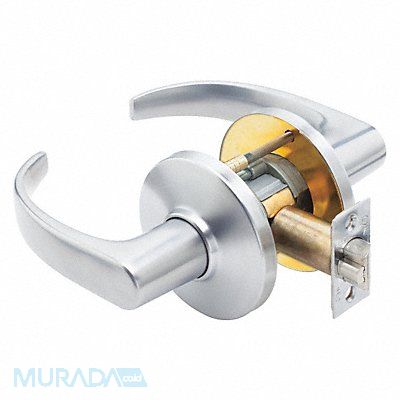 Mechanical Lever Cylindrical Lockset Function Privacy Lockset Grade 1 Style Curved Return Lever Lockset Finish Satin Chrome Keyway Type None Key Type Not Keyed Standards ANSI BHMA UL Listed ADA Compliant Yes Lockset Fire Rating 3 hr Backset 2 3/4 in Ligature Resistant No Cylinder Core Type Not Included Features C-Rose For Use With Various Door Types Handle Material Zinc Includes Hardware Item Door Lever Lockset Key Material Keys Not Included (Lock Is Keyless)