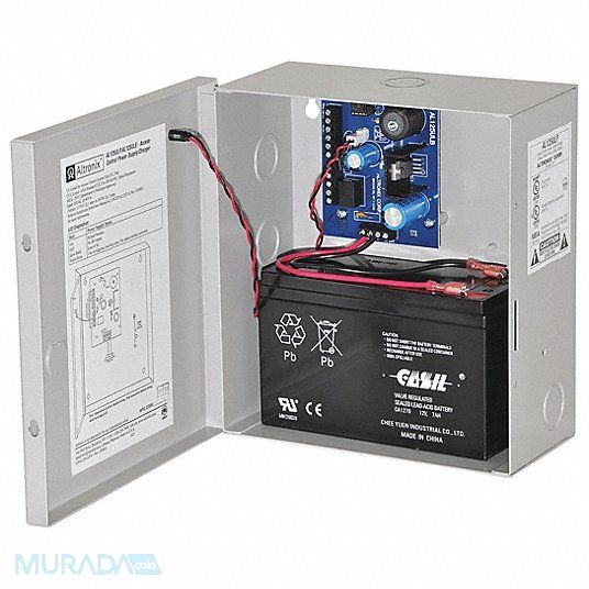 Power Supply 2Out 12Dc Or 24Dc @ 1A Type Power Supply/Charger Fire Disconnect Material Steel Finish Gray Enclosure Depth 3.50 In Enclosure Width 7.50 In Enclosure Height 8.50 In Input Voltage 24VAC Voltage OUTPut 12VDC or 24VDC OUTPut Current 1A Amps Input Frequency 60 Hz Standards UL294 CUL Includes Battery leads Cam Lock