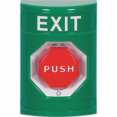 Exit Push Button Type Turn-To-Reset Switch Action Latching Material Polycarbonate Finish Painted Depth 2 7/8 in Height 4 7/8 in Width 3 1/4 in Button Color Red Color Green Button Dia 1-1/2 in Rating 10A @ 125 or 250V AC 6A @ 30V DC Input Voltage 125 to 250V AC 30V DC Output SPDT Relay Amps AC 10A @ 125 or 250V AC Operating Temp -40 Degrees to 250 Degrees F Event Audit Trail No Keypad No Cylinder No Standards ADA cUL UL For Use With Access Control Emergency Systems