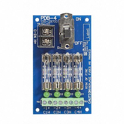 Power Distribution Type Multiple Output Board Material Plastic Length (In.) 2.25 Width (In.) 1.00 Height (In.) 3.75 Batteries Required No Number of Outputs 4 Input Voltage 12VAC/DC or 24VAC/DC Voltage Output 12VAC/DC or 24VAC/DC Output Current (Amps) 1 Fused Standards Class 2 Power Limited For Use With Access Control Devices Power Distribution Module