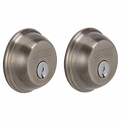 Deadbolt Cylindrical Residential Lockset Grade 1 Series B Lockset Finish Antique Pewter Keyway Type C Key Type Different Standards ANSI ADA Compliant No Lockset Fire Rating Not Rated Backset 2 3/8 in or 2 3/4 in Ligature Resistant No Cylinder Double Faceplate Dimensions 1 in x 2-1/4 in For Door Thickness 1 3/8 in to 1 3/4 in For Use With Keyed Knobs and Lever Includes Hardware Latch Strike Material Steel Number of Keys 2 Pins 5 Security Type Light-Duty