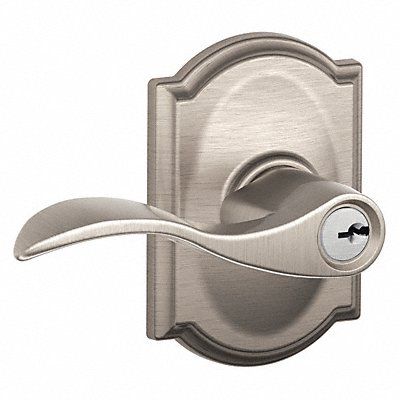 Mechanical Lever Cylindrical Lockset Function Entrance Lockset Grade 2 Style F Accent/Camelot Lockset Finish Satin Nickel Keyway Type Schlage SC1 Key Type Different Standards ANSI A156.2 ADA Compliant No Lockset Fire Rating 3 hr Backset 2-3/8 in or 2-3/4 in Ligature Resistant No Cylinder Core Type Conventional For Use With Residential/Light Commercial Applications Handle Material Brass Includes Latch Mounting Hardware Strike Item Door Lever Lockset Key Material Brass