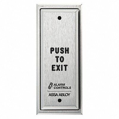 Push to Exit Button Type Push to Exit Switch Action Push Button Material Aluminum Finish Aluminum Height 4 1/4 in Width 3 3/4 in Color Silver Rating 2A @ 28V DC Input Voltage 12 to 24V DC Amps AC 2 Event Audit Trail No Keypad No Standards UL Listed For Use With Access Controls Includes Mounting Hardware