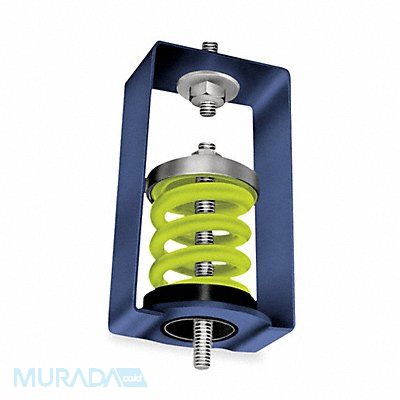 Hanger Mount Vibration Isolator Spring Capacity Range 55 to 76 lb Deflection Range 0.75 in to 1.02 in Max Rod Dia 3/8 in Lower Rod Penetration 3 1/2 in Depth 2 1/2 in Height 4 1/4 in Width 2 7/8 in Spring Color Black Color Mark Black Bushing Type Rubber