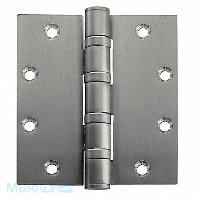 Butt Hinge Stainless Steel Satin Stainless Steel Finish 150 lb Load Capacity With Holes 4 Holes per Leaf No Ligature Resistant 270 Degrees Range of Motion Orientation Non Handed 4 1/2 in Door Leaf Height 4 1/2 in Frame Leaf Height 2 in Door Leaf Width 2 in Frame Leaf Width 0.18 in Door Leaf Thickness 0.18 in Frame Leaf Thickness 1-3/8 in Required Door Thickness Ball Bearing Type Square Corners Included Hardware