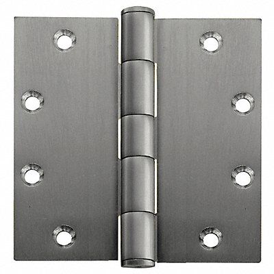 Butt Hinge Stainless Steel Satin Stainless Steel Finish 75 lb Load Capacity With Holes 4 Holes per Leaf No Ligature Resistant 270 Degrees Range of Motion Orientation Non Handed 4 1/2 in Door Leaf Height 4 1/2 in Frame Leaf Height 2 in Door Leaf Width 2 in Frame Leaf Width 0.134 in Door Leaf Thickness 0.134 in Frame Leaf Thickness 1-3/8 in Required Door Thickness Concealed Bearing Type Square Corners Included Hardware