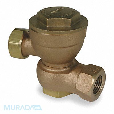 Steam Trap (F)NPT Connections 1/2 in Max Operating PSI 25 psi End to End Length 3 1/4 in Condensate Capacity Lbs/Hr 162 lb/hr Max Temp 353 Degrees F Type Thermostatic Body Material Brass Pipe Configuration Straightaway Swivel Pressure Air Vent Self-Adjusting Application Drains Heat Exchangers and Other Equipment After Condensate has Subcooled to Maximize the Heat Transfer from the Steam